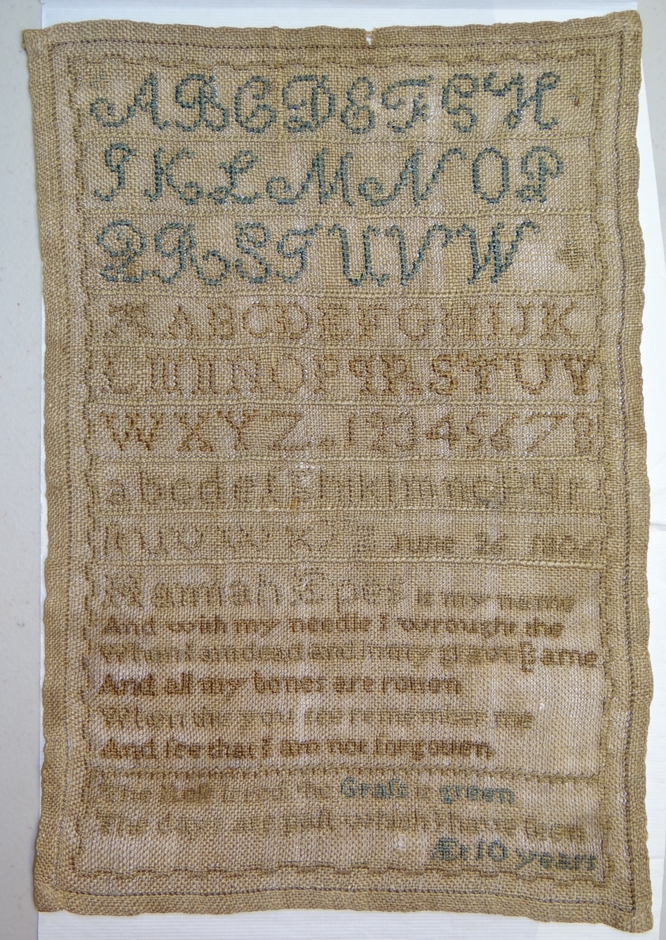 Conservation of Margaret Rose’s Sampler Ca 1832