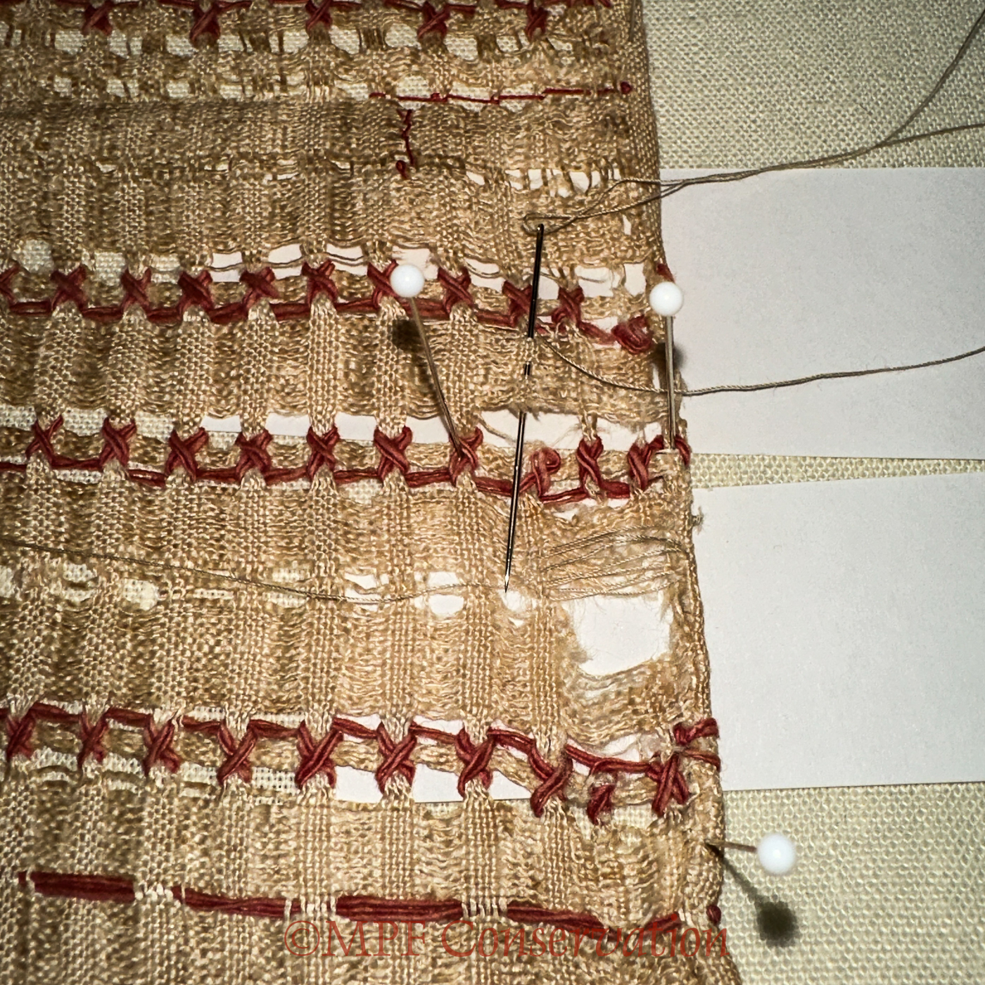 Drawn thread repair begins…