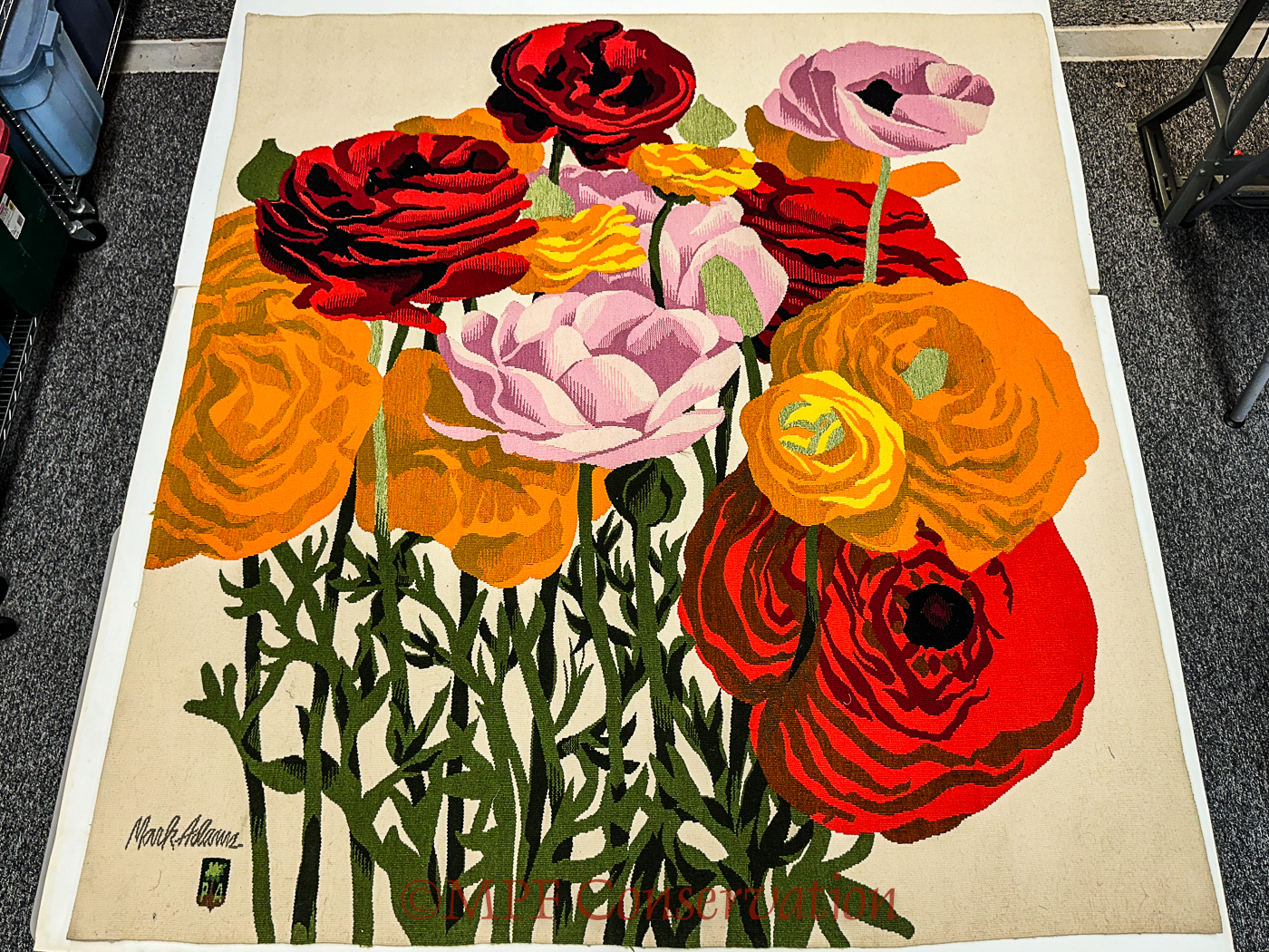MARK ADAMS “RANUCULUS” TAPESTRY CONSERVATION