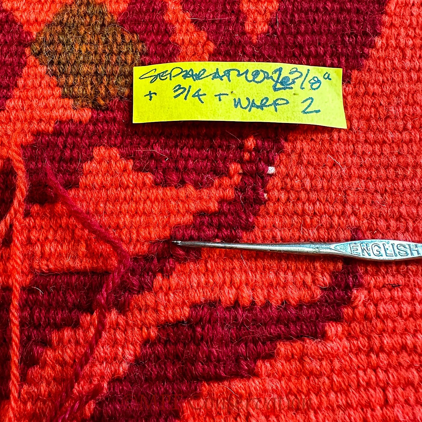 Three areas of exposed warp; one took double the yarn.