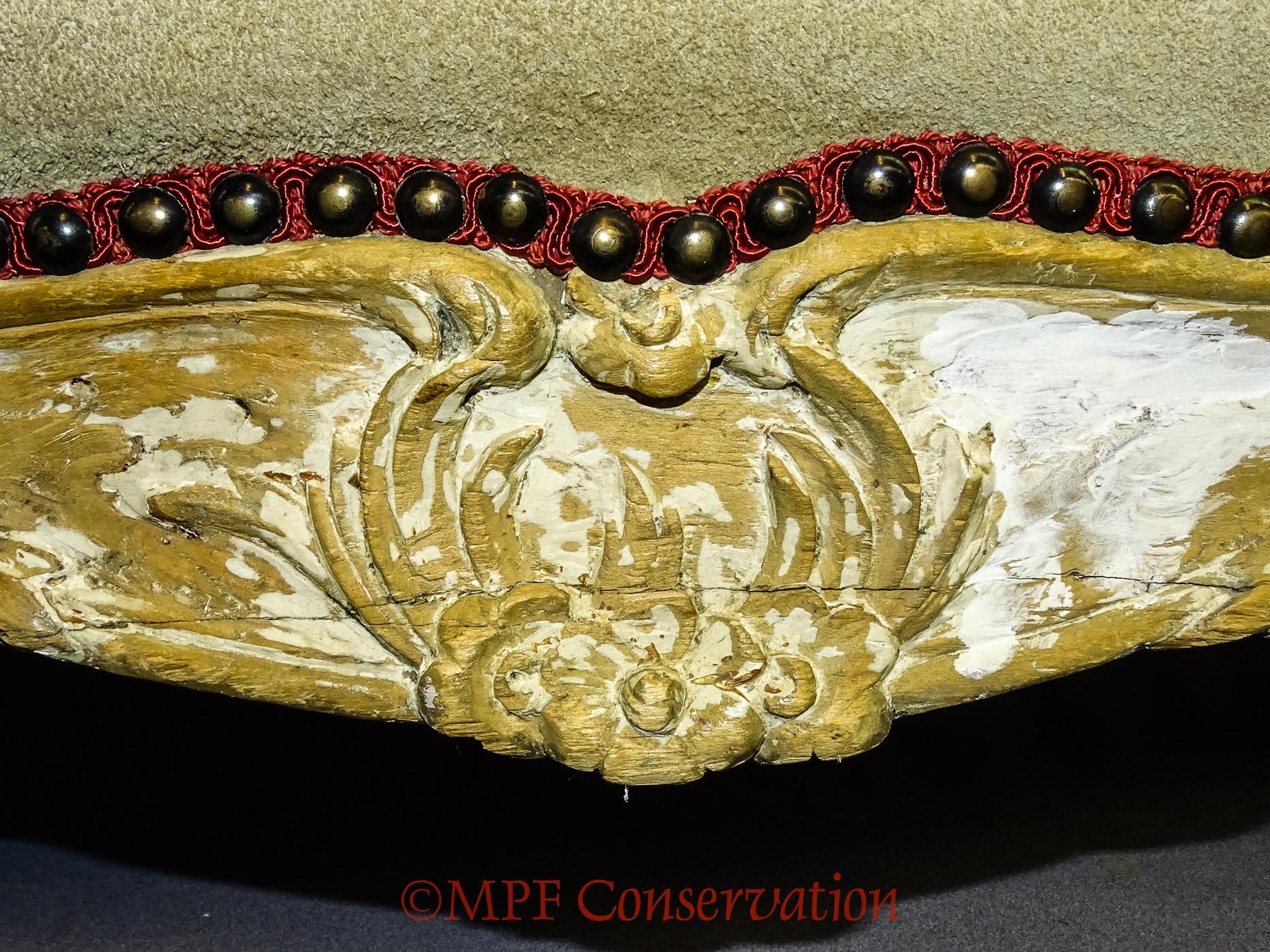 Note the poor upholstery done as it covers the carving.