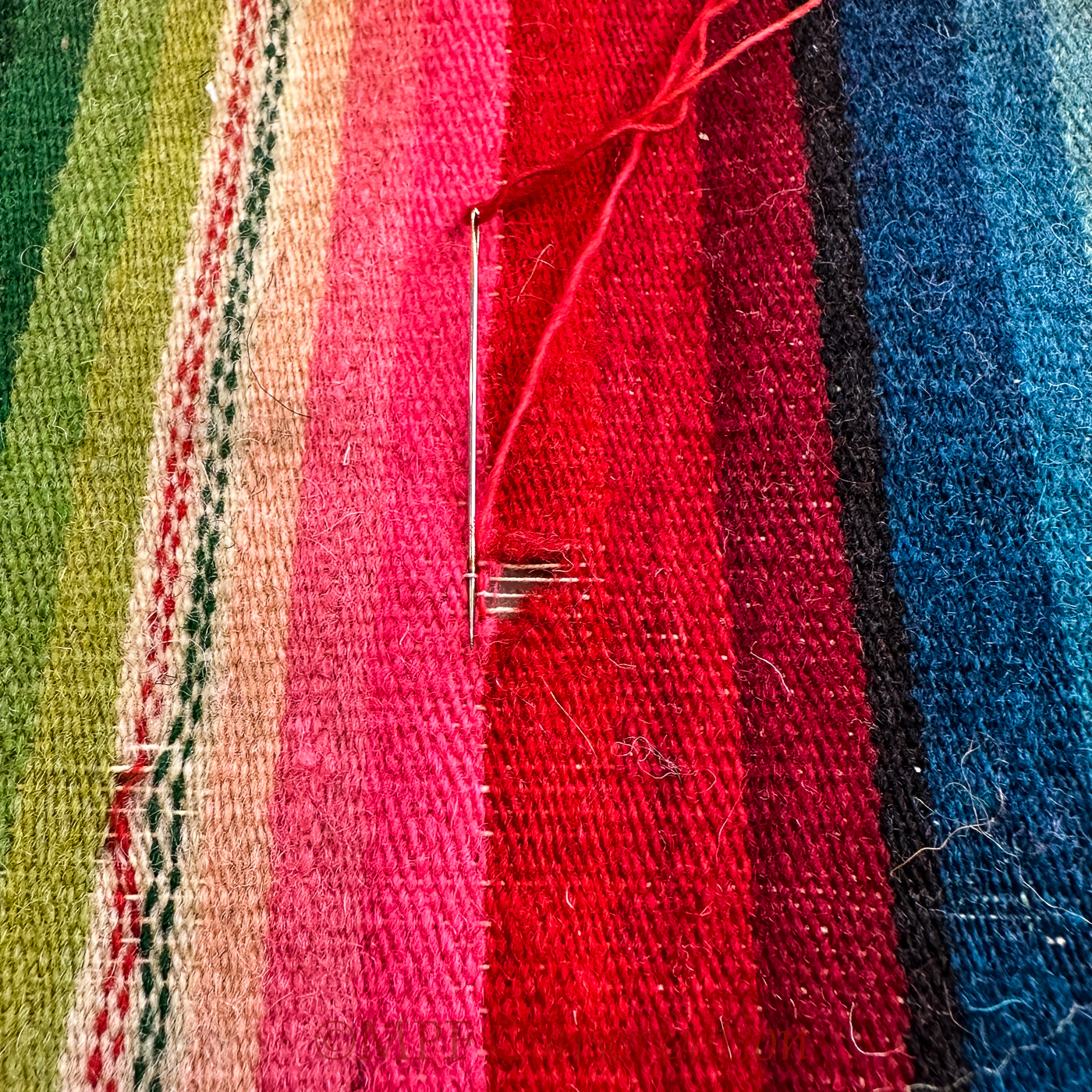 A relatively large whole in red; the warp line was intact.