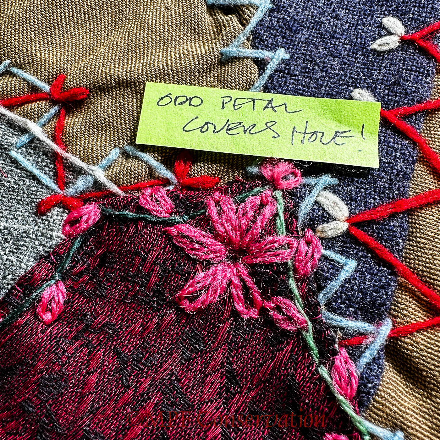 Floral items to cover big and tiny holes in historic fabric.