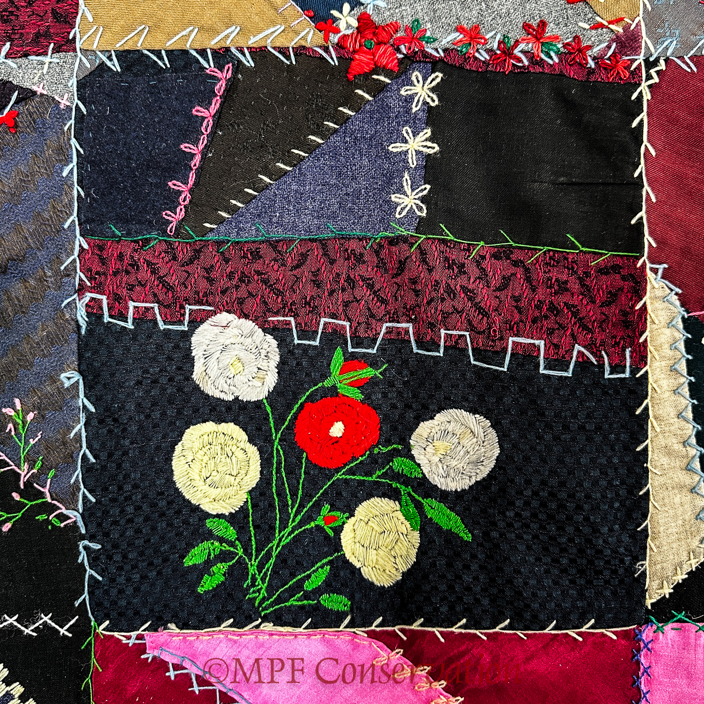 CRAZY QUILT WEDDING QUILT “TOPPER” RESTORATION