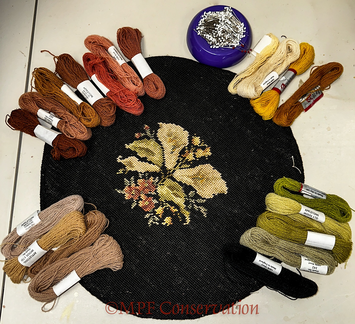 Restoration of a Floral Needlepoint Seat ca 1900