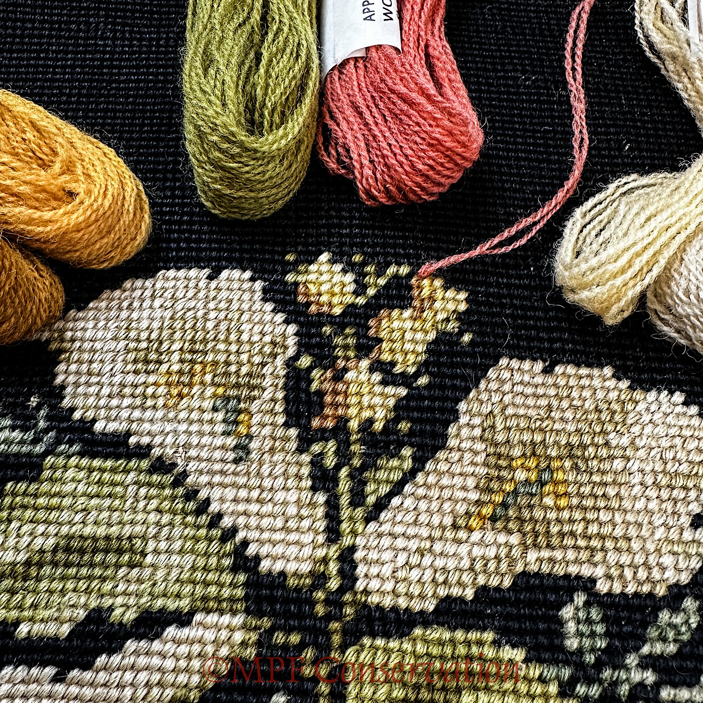 Restoration of a Floral Needlepoint Seat ca 1900