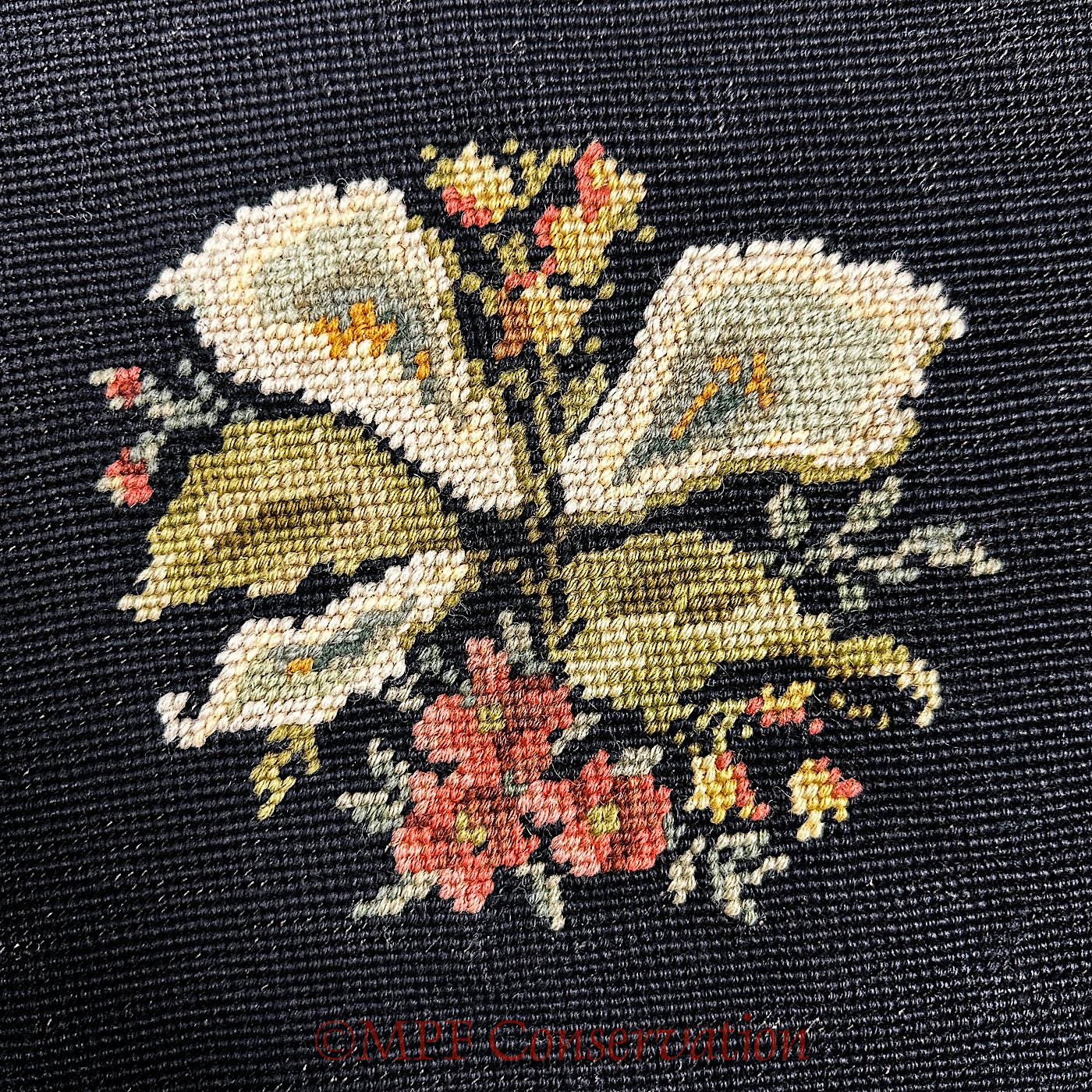 Restoration of a Floral Needlepoint Seat ca 1900