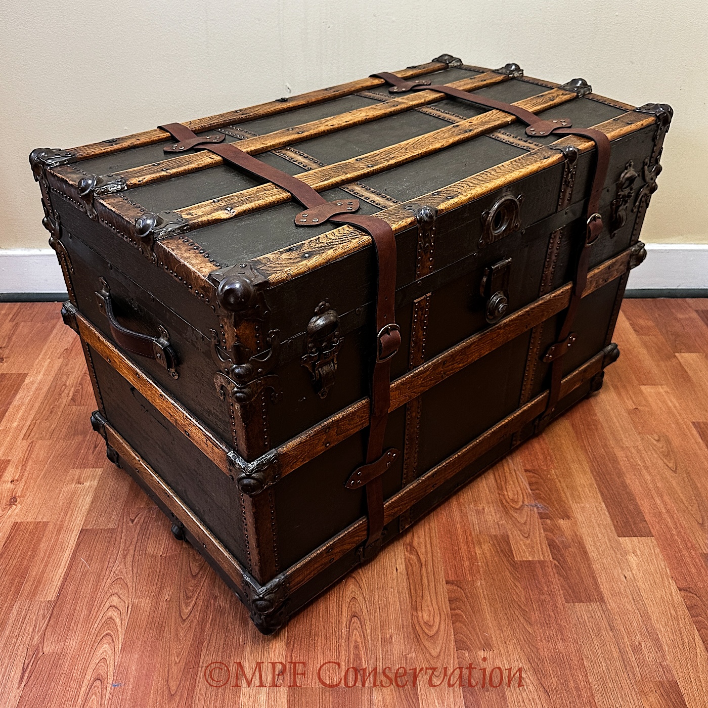 Wood Trimmed Steamer Trunk ca 1900