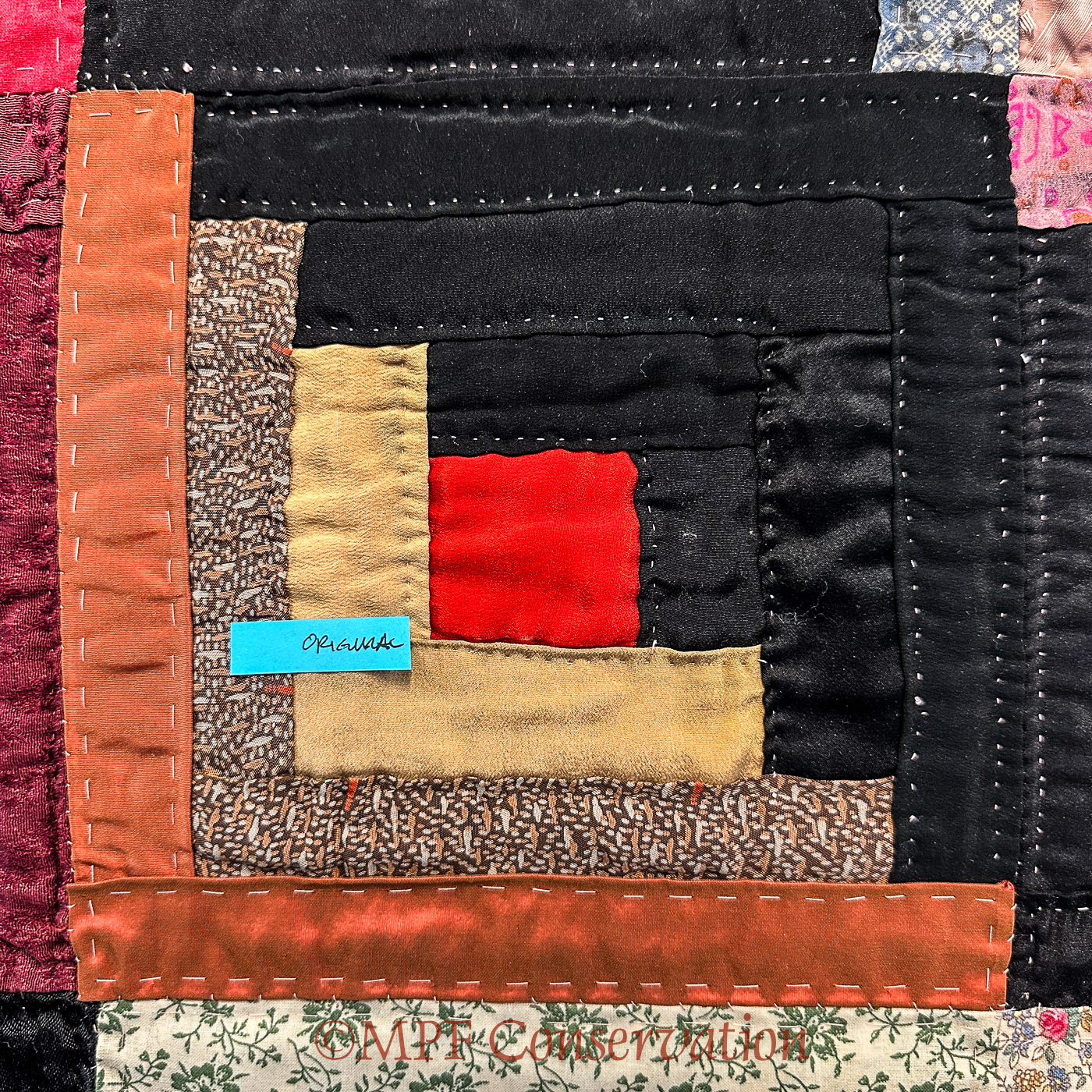 Center two are original. The gauzy brown fabric was intact in many squares.
